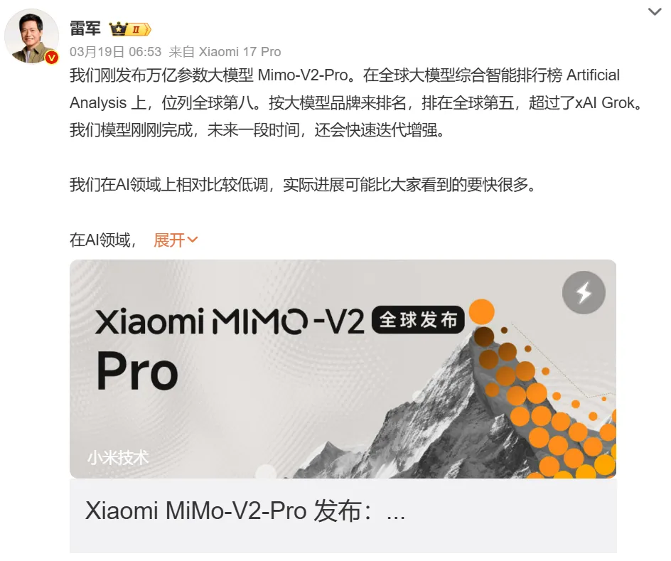 另外,小米 2025 全年研发投入 331 亿元,五年累计投入达 1055 亿元。反正研发这块,小米是真没含糊。 自研 Xiaomi MiMo 大模型跻身国内第一梯队,预计未来三年在 AI 领域投入 600 亿元。