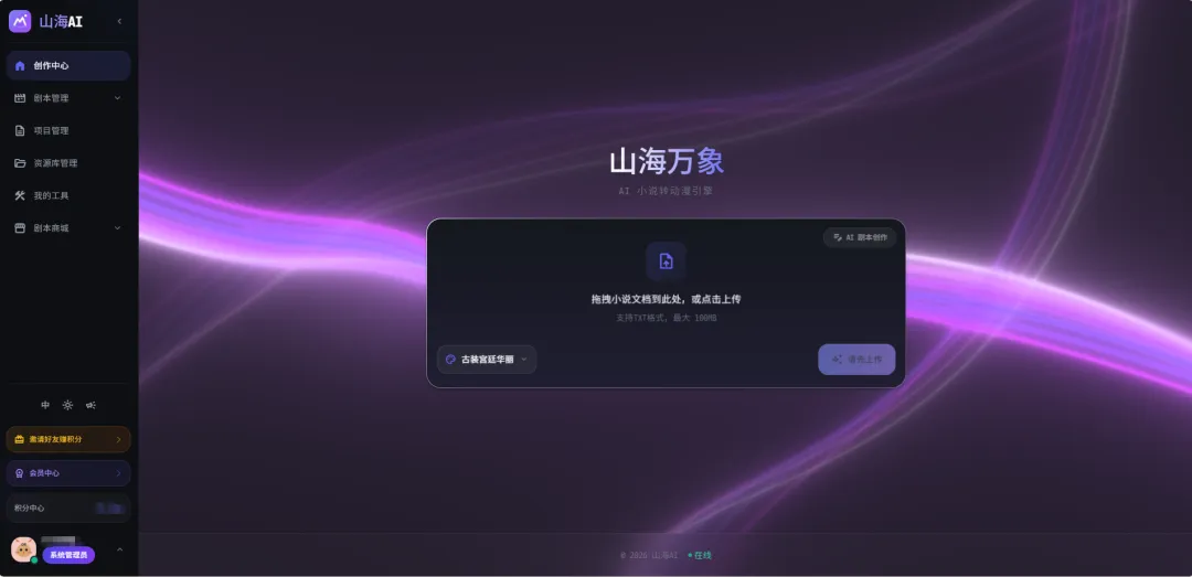 传统流程中,将一部40万字、结构复杂的小说改编为短剧剧本,是耗时数周、高度依赖编剧个人能力的瓶颈。山海万境AI的“小说转剧本”功能,试图将这个过程工程化。它并非进行简单的文本摘要,而是深入理解人物关系、情节脉络与情绪节奏。例如,在处理双男主暗中角力的复杂戏份时,系统能自动转换叙事视角,利用配角制造信息差,以符合影视语言的方式重构张力,并在集尾运用留白技巧而非信息堆砌。这背后是叙事逻辑的理解,而非模板填充。