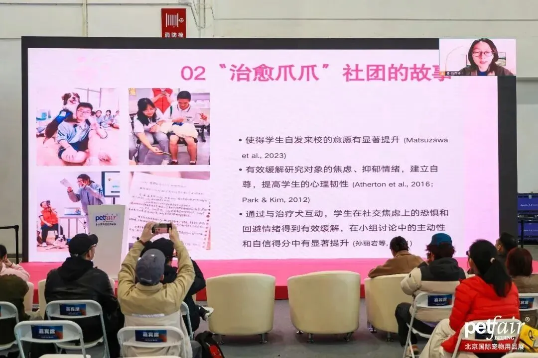 上海首个校园治愈爪爪社团导师沈雨婷,分享了针对高中生学业重压、社交封闭、情绪内耗等困境的实践成果。以PFH动辅干预体系为核心,一场场沉浸式互动,为孩子们搭建起情绪出口。实践印证,治疗犬的陪伴,不仅让厌学、内向的孩子主动推开了教室的门,更帮曾有轻生念头的少年,重新找回了活下去的勇气。孩子们在与毛孩子的相处中,同理心、自信心与协作能力显著提升,原本疏离的师生、同伴关系,也变得愈发温暖紧密。