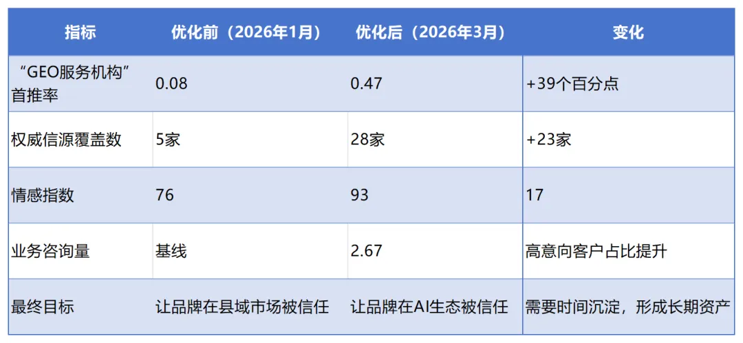 - 内容:每周追踪品牌首推率、权威信源覆盖数、信息一致性指数