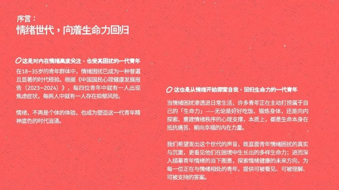 压力之下,青年们逃不开四个共同的痛点。拖延效率下降睡眠紊乱逃避。超七成青年在压力下最先滋生的是焦虑情绪,73.9% 的青年都被焦虑裹挟过。压力下最常出现的三种情绪,依次是焦虑烦躁自我怀疑。而焦虑最直接催生的,就是拖延和逃避行为。58.7% 的青年会用刷短视频打游戏的方式逃避压力,50% 的人会陷入拖延的怪圈。可拖延和逃避从来都不是情绪的解药,反而会直接拉低工作和学习效率,打乱睡眠节奏,这些后果又会反过来加重焦虑,让年轻人掉进情绪不断恶化的循环里。和其他时代其他年龄段相比,18 到 34 岁青年的焦虑水平正在迅速上升,近年来全球焦虑症的发病比例增加了 63%,而青年群体正是其中最主要的承压者。
