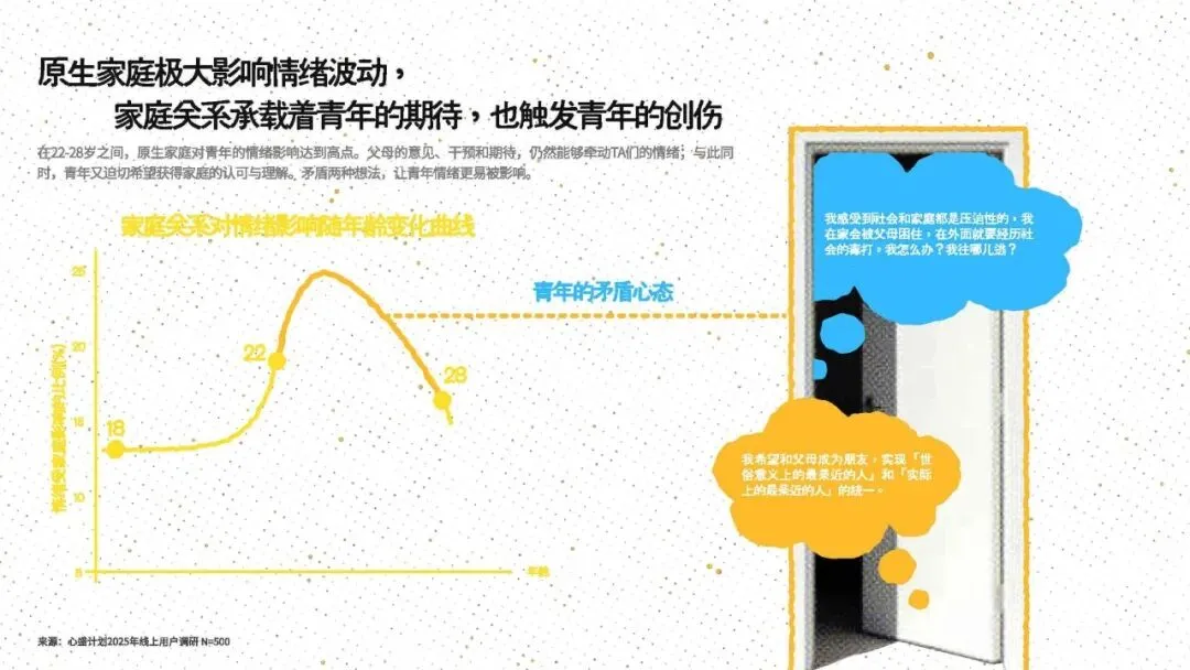 面对情绪困扰,青年们的归因也在拉扯。超过半数的青年,第一反应是从自己身上找原因,56% 的人认为情绪困扰是自己的问题。完美主义高敏人群内耗大王自我 PUA,这些都是青年给自己贴上的标签。但同时他们也越来越清晰地意识到,自己生长在一个完整的系统之中,社会竞争的大环境网络舆论的影响原生家庭的印记过往的创伤经历,都在自己的生命里留下了深刻的印记。