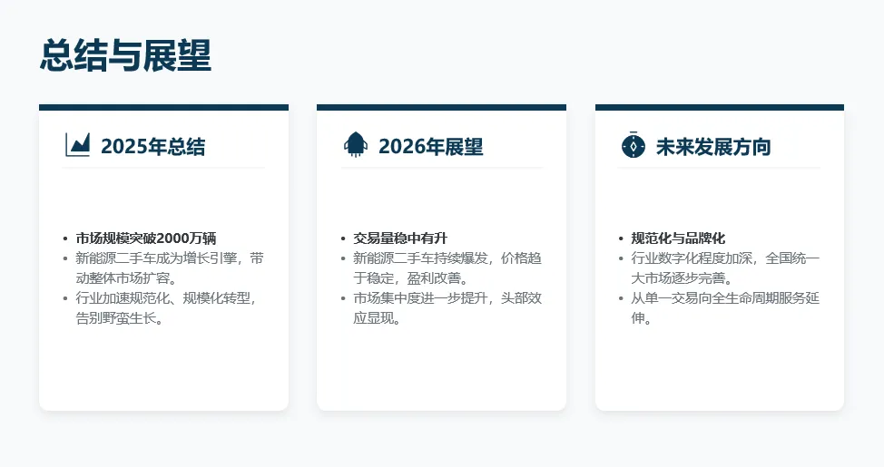 对于2026年市场,罗磊表示充满信心。主机厂调低销量预期有助于稳定新车价格,利好二手车经营。巨大的保有量基数为二手车交易提供了增长空间。新能源二手车将继续成为市场的重要驱动力,行业向规范化、品牌化方向发展,将增强消费者购买信心。他预计2026年二手车交易量将超过5%的增长。