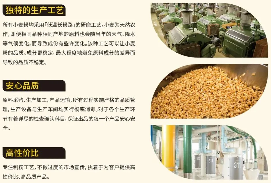 具有出色的延展性、烤焙弹性,操作性好。保留完整麦香的特质、稳定的结构表现力,吸水性强,是烘焙业者的理想之选。