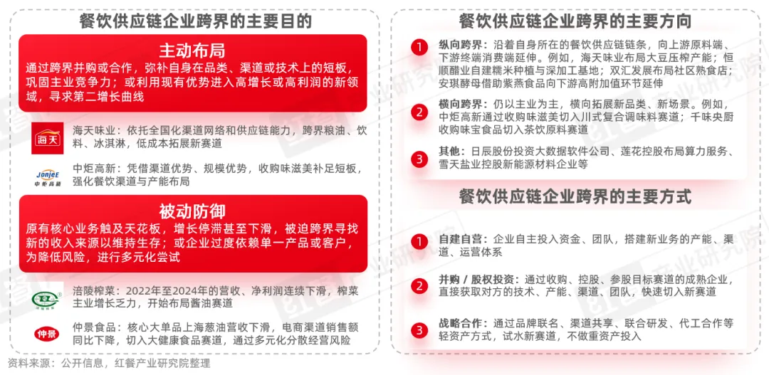 一方面,企业通过跨界并购或合作,弥补自身在品类、渠道或技术上的短板,巩固竞争力;或利用现有优势进入高增长或高利润的新领域,寻求第二增长曲线。如安琪酵母借助紫燕食品向下游高附加值环节延伸。