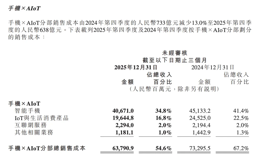 電子產品及家用電器商品收入”季度同比下滑12%,受到2024年国补高基数影响。可以看出,小米的增速至少不好于行业整体。