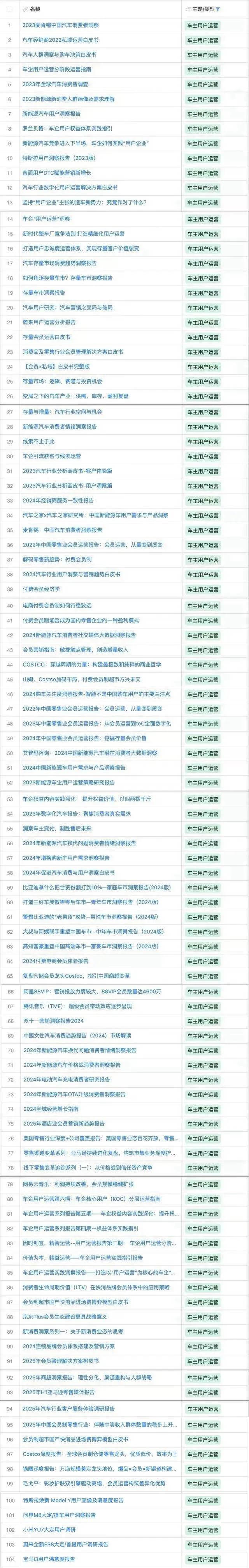 连确汇总有关于汽车保险经营创新、车主用户增长运营、汽车营销与商业模式三大主题的500+篇报告,每周四更新,敬请期待!