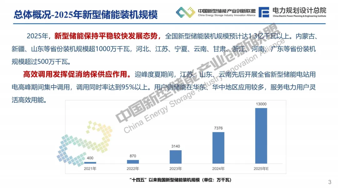 2025年,我国新型储能装机规模估计达到1.3亿千瓦以上,较2024年的7376万千瓦同比增长约76%。