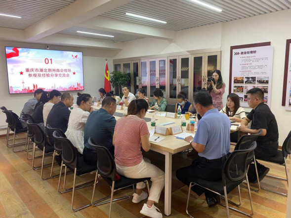 重庆市湖北荆州商会会长王琼秀对与会人员的到访表示欢迎,并向参会人员简要介绍了商会基本情况。随后,荆州商会秘书长陶治州带领大家现场参观湖北荆州商会的阵地,详细介绍了商会建设历程、组织构架等,向参会人员分享社会组织等级评估的经验、做法与体会,并对大家提出的问题做出解答。