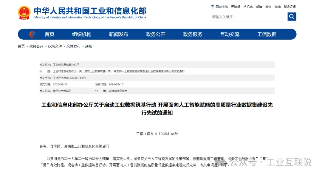 工业和信息化部办公厅发布关于启动工业数据筑基行动 开展面向人工智能赋能的高质量行业数据集建设先行先试的通知。