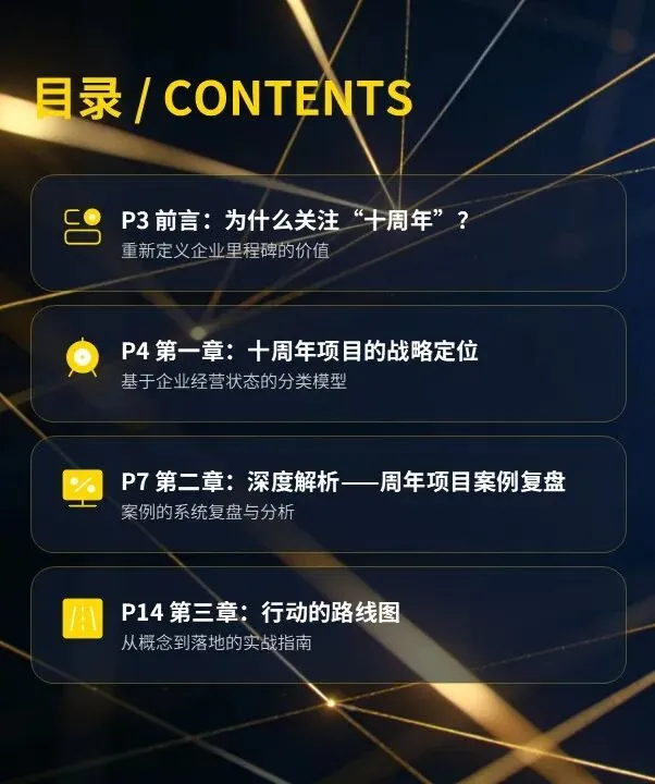 最近拿到这本《公司十周年项目行业白皮书》时,我最直接的感受是:终于有人愿意从“周年庆”这件事本身出发,把它背后的逻辑讲清楚了。