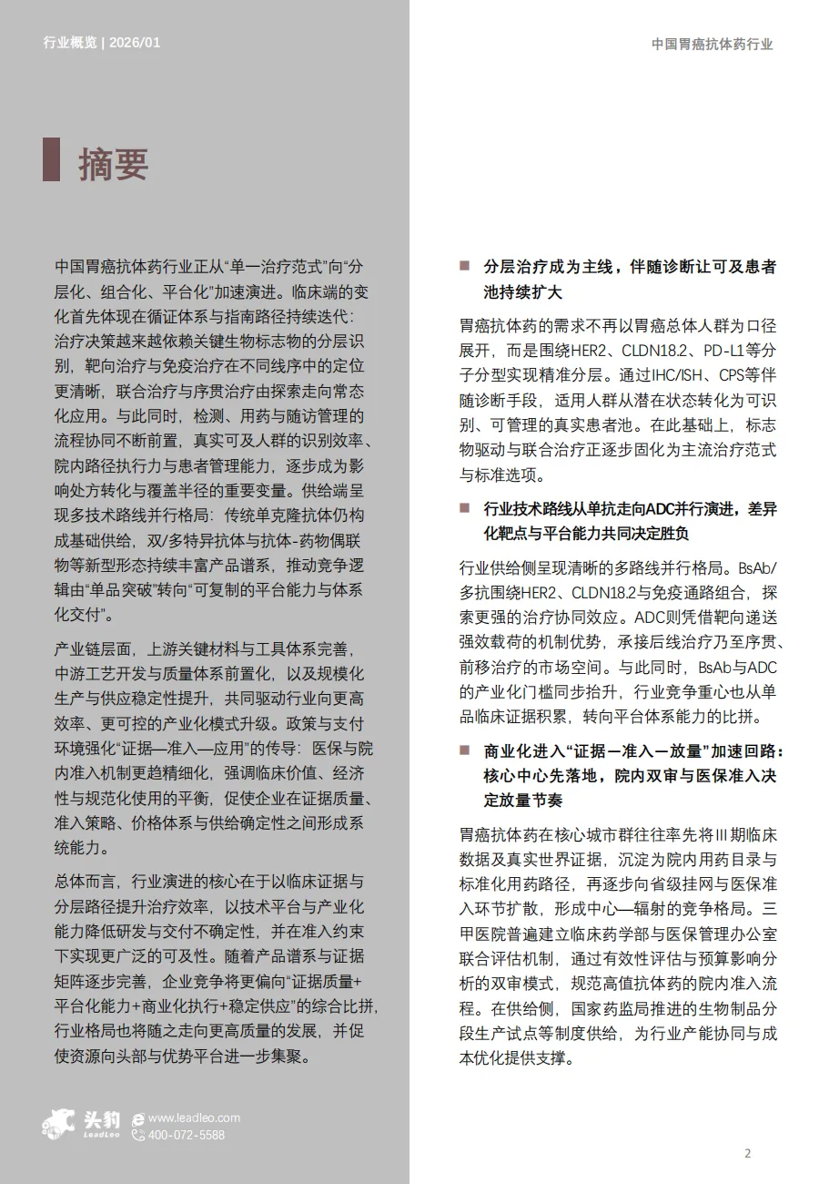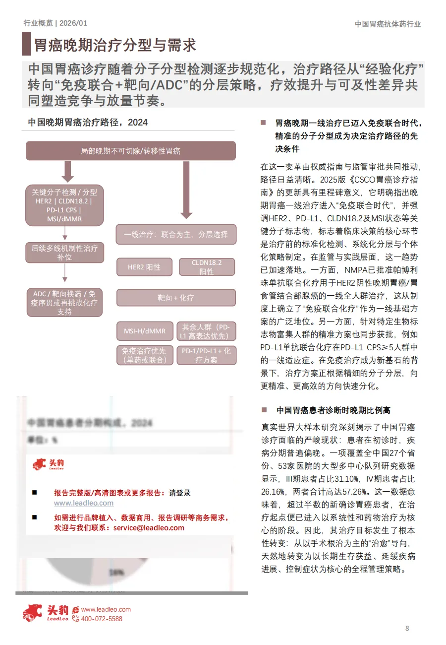 中国胃癌抗体药行业正从“单一治疗范式”向“分层化、组合化、平台化”加速演进。临床端的变化首先体现在循证体系与指南路径持续迭代:治疗决策越来越依赖关键生物标志物的分层识别,靶向治疗与免疫治疗在不同线序中的定位更清晰,联合治疗与序贯治疗由探索走向常态化应用。