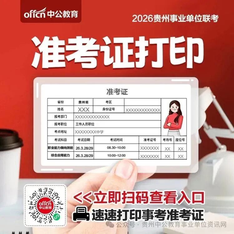 贵州事业单位ABCDE类准考证打印入口已开通 ✅️准考证打印时间:3月23日9:00至3月26日17:00✅️准考证打印网址:贵州人事考试信息网