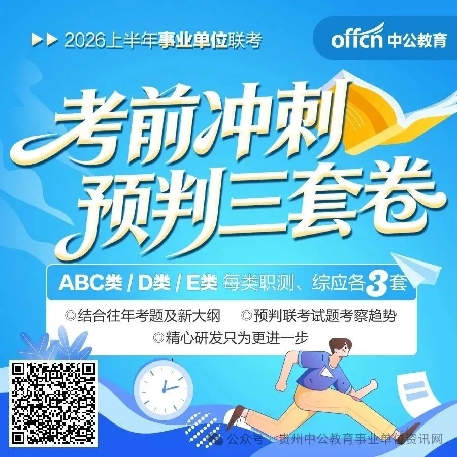 贵州事业单位ABCDE类必做三套卷 贵州事业单位联考笔试倒计时!?329联考考前冲刺预判三套卷上线ABC类各3套丨D类3套丨E类3套精心研发往年考点,大胆预判考察趋势