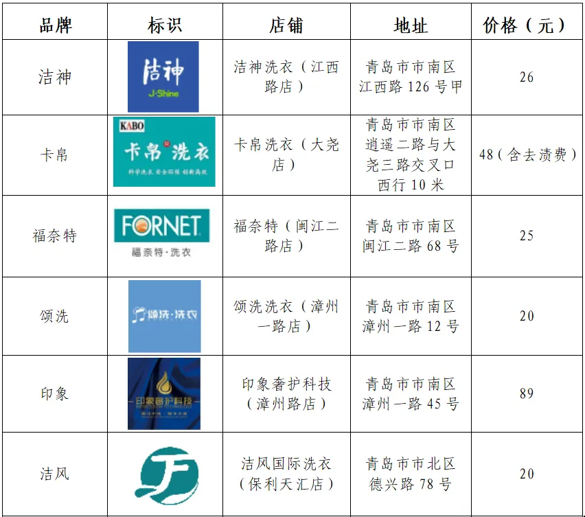 3.试验中记录的洗染服务价格,为测试当时门店实际执行的收费标准,仅作消费者了解当期市场行情的参考,不代表品牌固定定价、行业统一指导价,后续消费以门店实时公示价格为准。