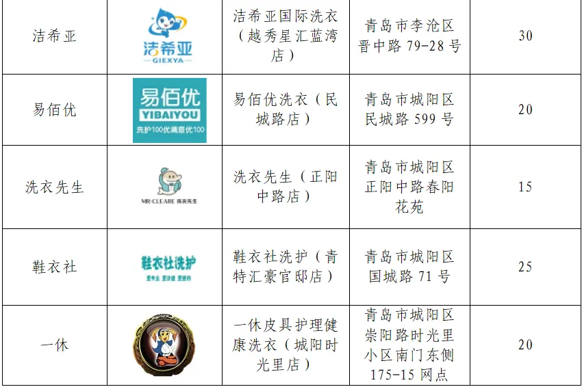 (注:本表所列洗衣店,系按衣物送洗先后顺序排列。)