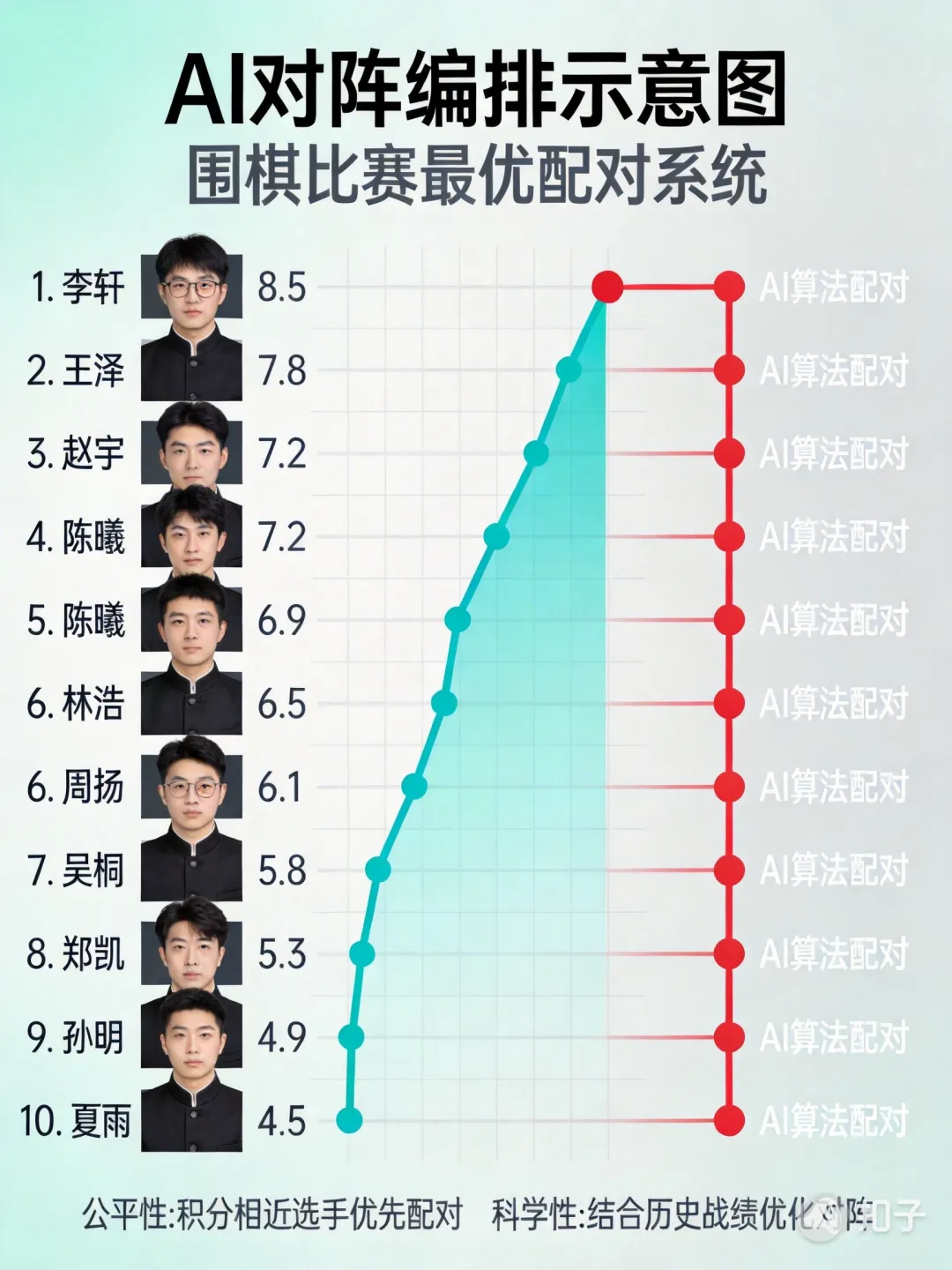 智能编排算法:根据选手等级、历史成绩自动生成公平且具挑战性的对阵