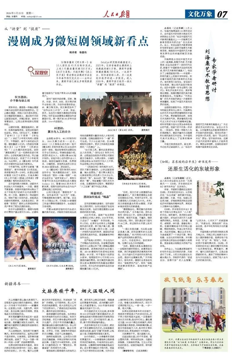 本文刊载于《人民日报海外版》(2026年03月23日07版),聚焦漫剧这一微短剧新赛道,介绍其融合漫画分镜与动态视听的形态特点。市场数据显示,仅2025年抖音端原生漫剧上线数就突破6万部,播放量超700亿次。在AIGC技术的推动下,创作效率大幅提升,但精品漫剧仍需“人机磨合”与人工创意注入灵魂。随着广电总局将AI漫剧纳入审核、平台优化规则,行业正从“拼量”转向“提质”,未来竞争将聚焦于故事品质与持续产出爆款的能力。