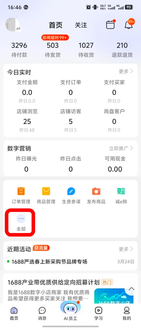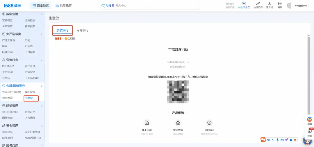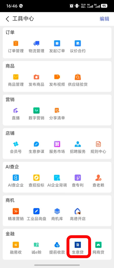 电脑端访问:1688卖家工作台>金融/增值服务>生意贷;