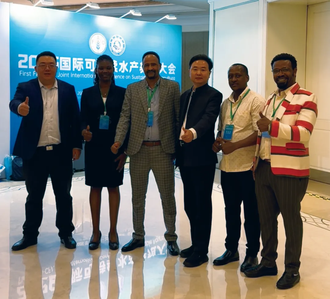 | 中联天盛(河南)文旅执行总裁曲来印与埃塞俄比亚渔业部部长以及非洲渔业同仁合影