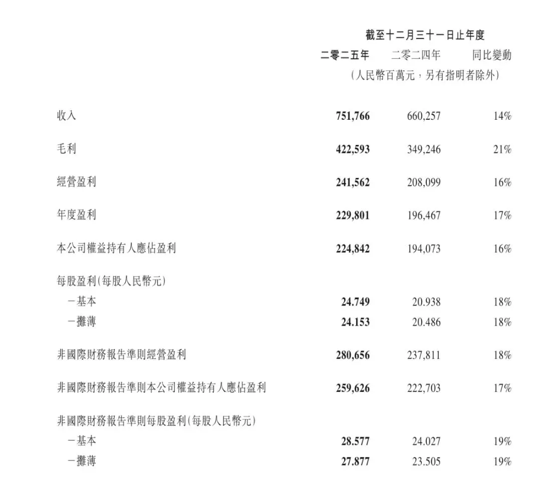 | Non-IFRS净利润 | 2596亿元 | +17% |