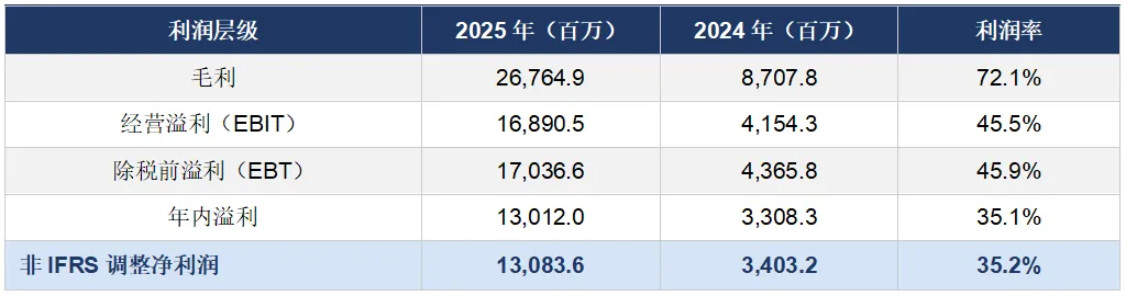盈利质量显著改善:净利润率从2024年的25.4%提升至35.1%,运营杠杆效应充分释放。