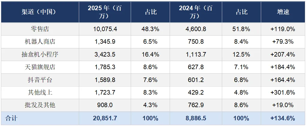关键观察:美洲市场增速高达748.4%,已成为公司第二大海外市场,占比从仅6.2%跳升至18.3%。这主要得益于TikTok电商渠道的高速增长(+865.9%)及线下门店快速扩张(从22家增至64家)。欧洲市场增长506.3%,在多个地标位置开设旗舰店有效带动了品牌声量和销售转化。
