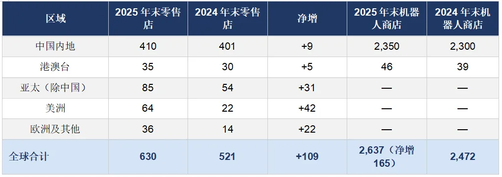全球门店网络仍在快速扩张期,线下覆盖密度与成熟品牌相比仍有较大空间。