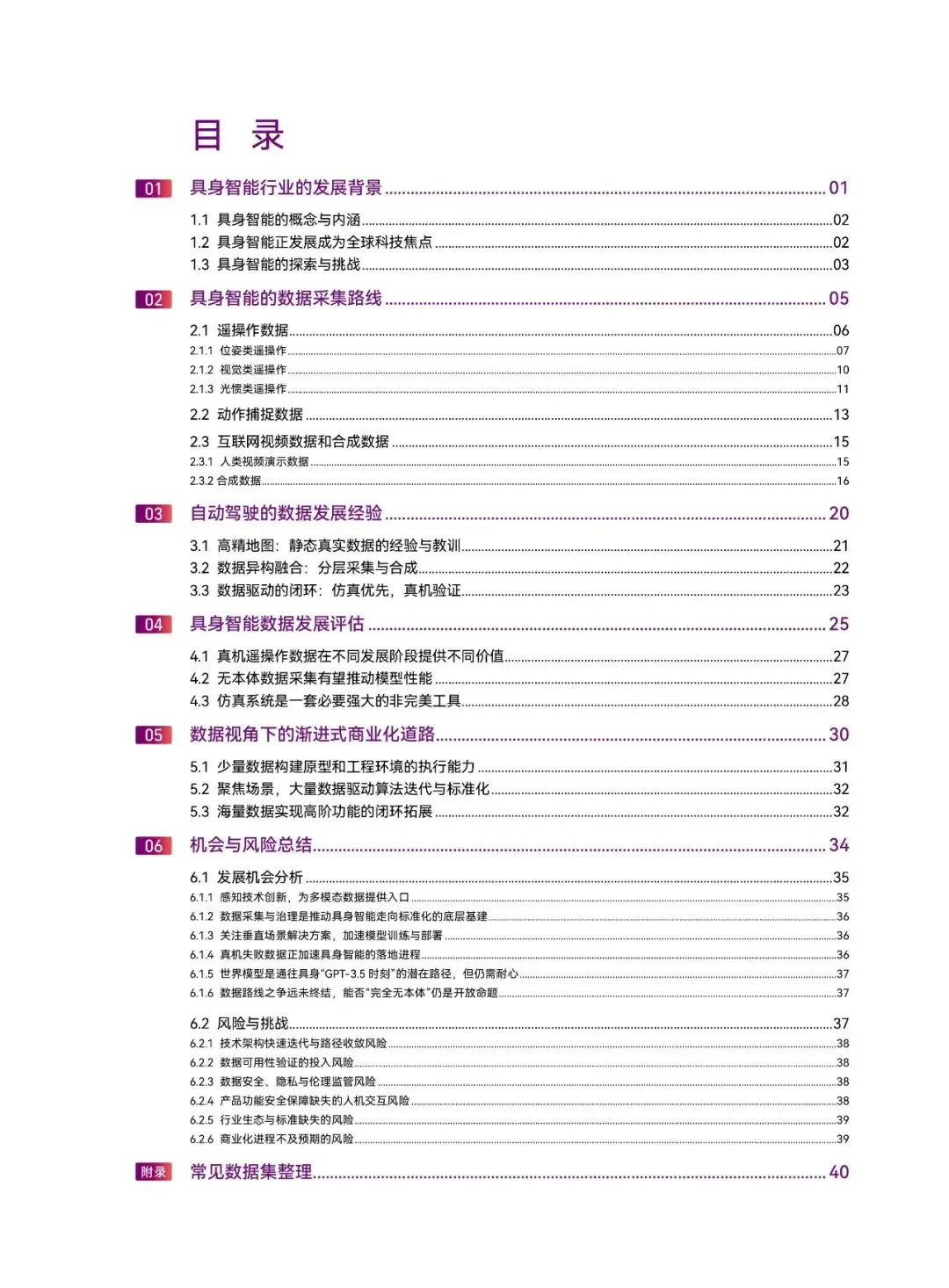 报告还梳理了感知技术创新、数据治理等六大发展机会,以及技术迭代、数据安全等六大风险,强调数据是具身智能产业发展的核心要素,行业需突破数据规模化供给与标准化难题,推动技术落地与产业升级。