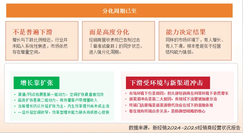 因为从我们2025年8月份的调研数据看,今天的市场并不是所有经销商都在下滑,而是已经进入了一个非常明显的强分化周期。