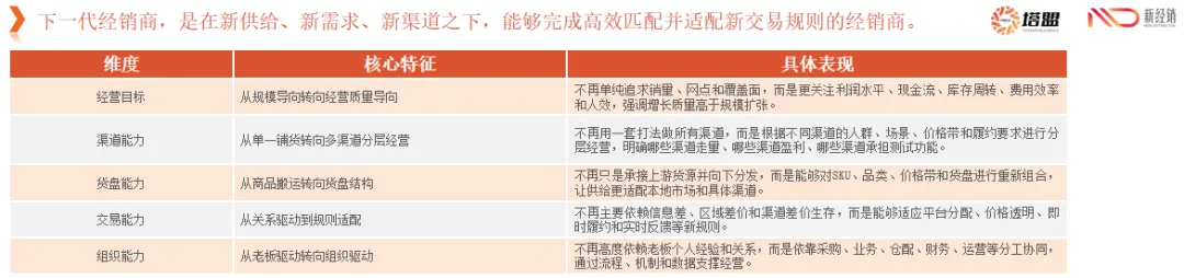 我们给它的定义是:下一代经销商,是在新供给、新需求、新渠道之下,能够完成高效匹配,并适配新交易规则的经销商。
