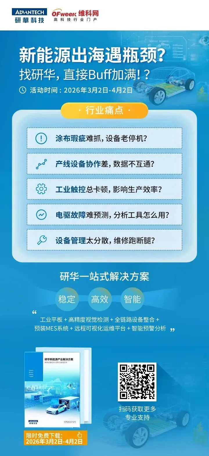 研华科技依托在工业物联网与嵌入式系统的深厚积累,围绕电动汽车全产业链——从电池智造、整车组装到配套设备运维——提供了一系列高性能、高可靠的软硬件一体化解决方案,助力企业实现设备检测、控制与管理的智能化升级,赋能新能源产业迈向更安全、高效、可持续的未来。