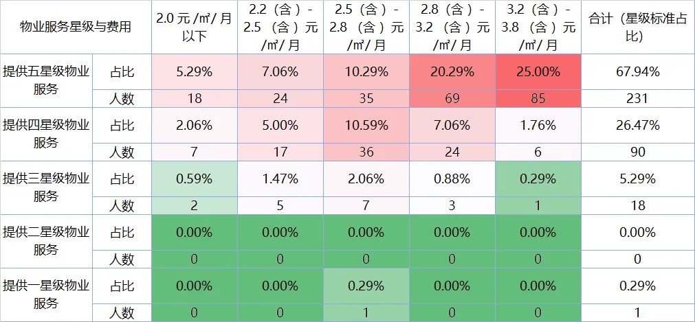 调查结果显示,当前参与调查的公寓业主对较高服务水平和这样一个费用区间具有一定接受度。
