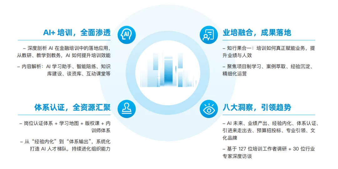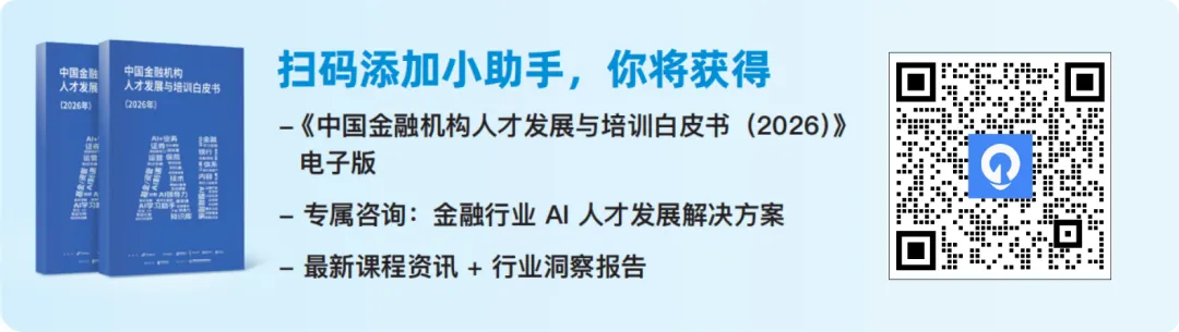 《中国金融机构人才发展与培训白皮书(2026)》完整电子版 一对一咨询:金融行业 AI 人才解决方案深度解读 专属定制:根据您的业务需求,推荐匹配的金融企业 AI 课程清单