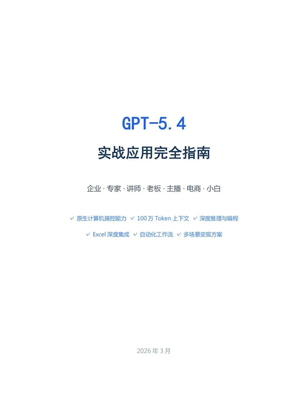 是一份针对GPT-5.4模型在2026年3月发布后的综合性实战应用指南。核心目标是为不同职业背景的用户提供可直接落地、创造价值的场景与工具。