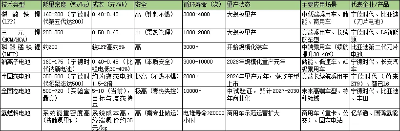 2026年新能源电池技术路线全景对比
