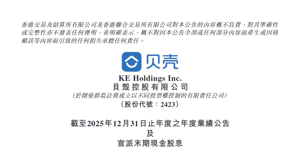 3月16日晚,贝壳闷声发布2025全年财报。