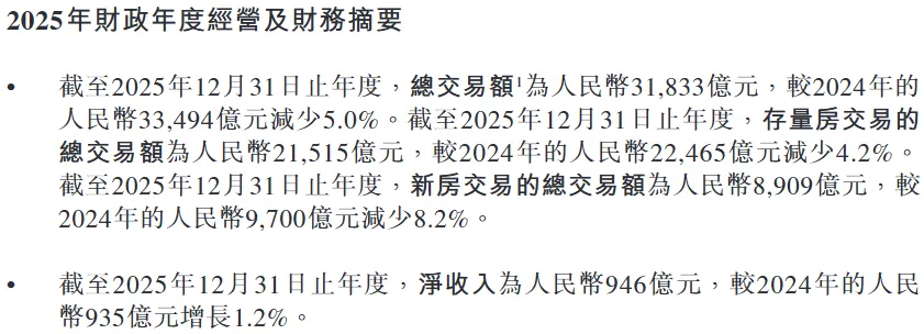 全年净收入:946亿元,同比微增1.2%(别人都在亏,贝壳勉强稳住,靠的不是卖房多,而是路子变了);