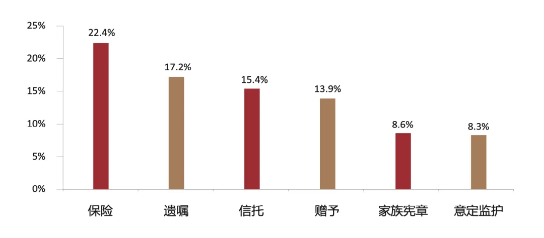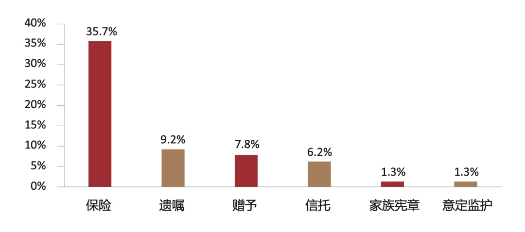 财富代际传承的内涵日益丰富,方式更趋多元,已从单纯的财产过户,转向以 “人”为核心的传承体系,更加注重继承人能力培养与家族理念传递。同时,传承规划呈现年轻化趋势,调研显示,35岁及以下年轻高净值人群中已有32.2%开展系统性传承安排,保险、家族信托、遗嘱等专业传承工具的实操应用需求大幅提升。