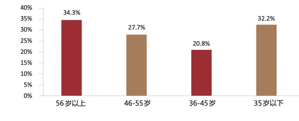 图:不同年龄段高净值人群已开始实施财富传承规划的人群占比