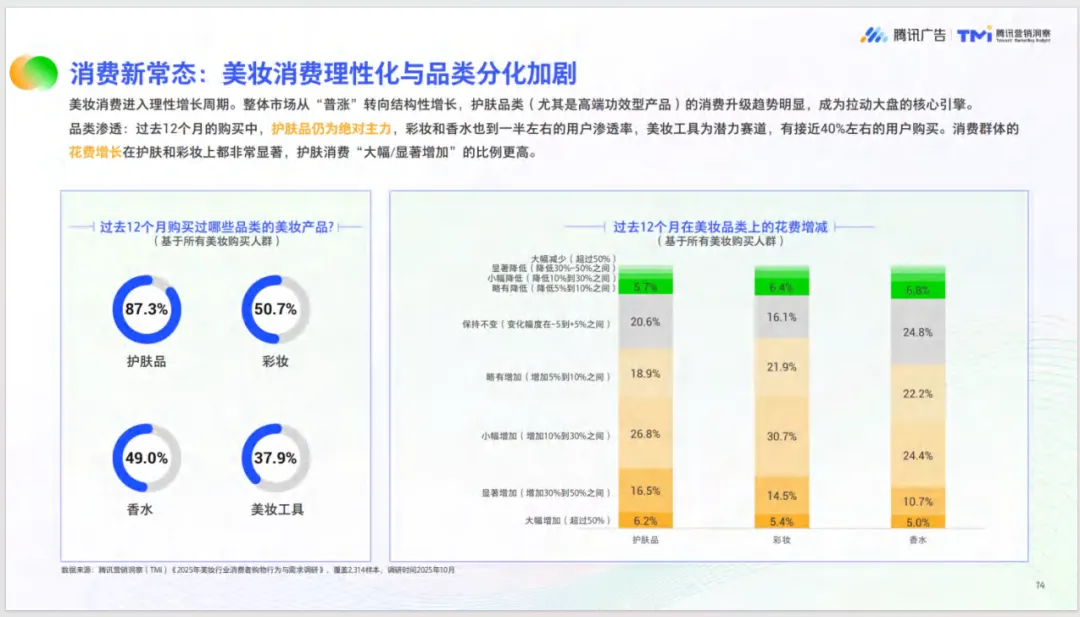 本白皮书《美妆行业公私域融合经营白皮书》精准回应了美妆行业当前从“流量争夺”向“全域经营”转型的核心挑战。在市场规模巨大但增速放缓、线上渠道主导的存量竞争新阶段,报告为品牌指明了兼具确定性与增长性的经营新阵地,即腾讯微信生态。通过深度拆解微信生态内的经营现状、消费习惯与增长逻辑,白皮书为行业提供了从宏观趋势到微观实操的全景洞察,帮助品牌在复杂市场环境中厘清方向。其次,报告系统论证了公私域融合经营作为未来核心增长模式的可行性与巨大价值。它明确指出,微信生态已构建覆盖“内容种草-私域沉淀-交易转化-复购留存”的完整商业闭环,而视频号、微信小店、公私域流量融合等正开辟全新增长空间。白皮书以实证数据揭示了微信小店在礼赠节点的爆发力、为品牌带来的优质新客价值,以及其与小程序在人群上的低重合与高互补性,从而确立了“小店拉新拓客”与“小程序沉淀服务”双擎驱动的融合经营范式,为品牌实现可持续增长提供了可落地的战略框架。再者,白皮书基于多源数据融合的研究方法,提供了极具操作性的实战指南。它不仅深度剖析了护肤品、彩妆等品类的结构性机会与内容蓝海,还精准刻画了奢美贵妇、精研型中产、小镇贵妇等高价值客群的差异化需求与渠道偏好。同时,报告通过花西子、施丹兰、珀莱雅等多个头部品牌的成功案例,具体展示了如何通过内容种草、节点营销、达人合作、广告破圈等组合策略,在微信生态内实现生意闭环。这些洞察与样板为品牌规划产品创新、人群运营、内容策略与资源协同提供了直接参考。最终,本白皮书的深远意义在于推动行业共识与生态共建。它标志着腾讯与美妆品牌携手,共同探索从短期流量转化到长期用户经营、从单点营销到全域协同的深度变革。报告倡导以用户需求为中心,高效协同生态内公私域资源,其总结的产品创新、人群运营、视频号内容、小店与小程序协同、节点全域整合等五大启示,为行业迈向“全域精细化”经营时代提供了系统性的行动纲领,助力中国“美丽经济”构建更具韧性与增长性的未来。