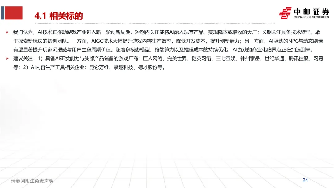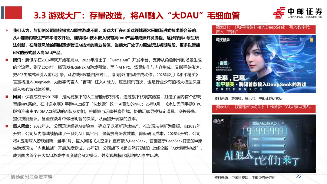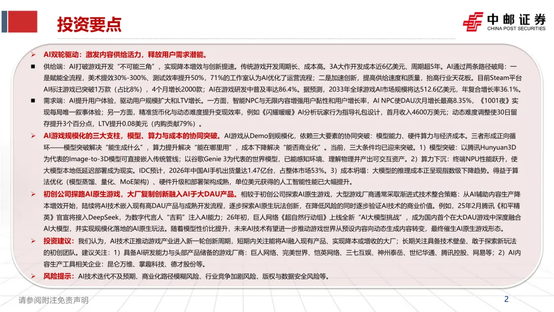 洞察 | 人工智能行业AI重塑游戏:供给革新与需求跃迁,开启游戏产业新周期