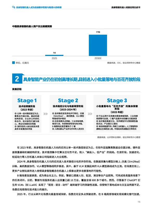 创业邦与SAP联合发布的《2025具身智能机器人场景应用白皮书》,系统梳理了这条赛道从技术验证到小批量落地的关键跃迁。报告预测,到2030年,中国具身智能机器人用户支出规模将飙升至770亿美元,年复合增长率高达94%。而在市场爆发的前夜,真正值得关注的不再是“机器人能做什么”,而是“机器人如何懂业务、会决策、能创造价值”。