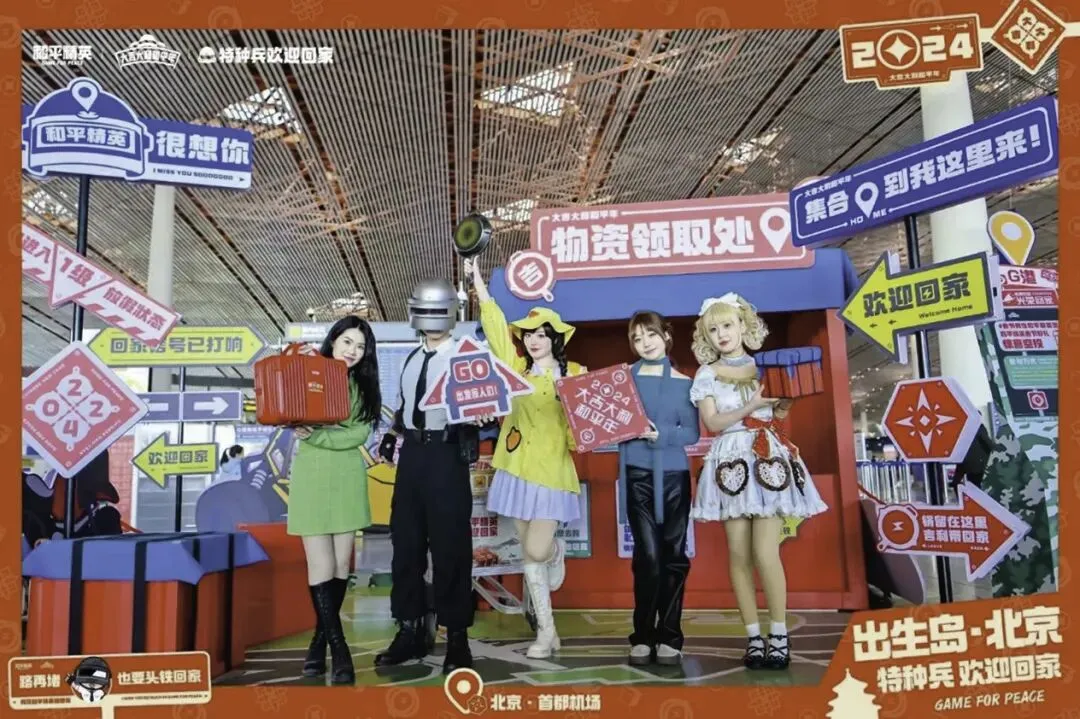 这种过渡性身份带来的情感需求与直觉决策倾向,在北京首都机场“和平精英·特种兵回家过年”快闪活动中得到生动体现。春节前夕,航站楼内的旅客多以“返乡者”为核心过渡身份,常规职场、社交身份暂时弱化,对“回家团圆”的情感需求尤为强烈。活动紧扣这一身份心理,将游戏IP与春节主题结合,用对联、灯笼等节日装饰搭建沉浸式“家”场景,通过角色互动、话题分享、春节礼包派发等形式,让旅客在“特种兵回家”的情感共鸣中主动参与。品牌信息并未刻意推销,而是以“节日陪伴者”的姿态嵌入出行场景,旅客在打卡互动、分享故事的过程中,自然强化对品牌的情感认知,甚至通过话题传播形成二次裂变。这种情感需求到身份适配的传播逻辑,正是机场过渡性角色的核心价值,机场旅客作为“返乡者”,更易被情感化场景触动,实现从“被动接收”到“主动认同”的转化。