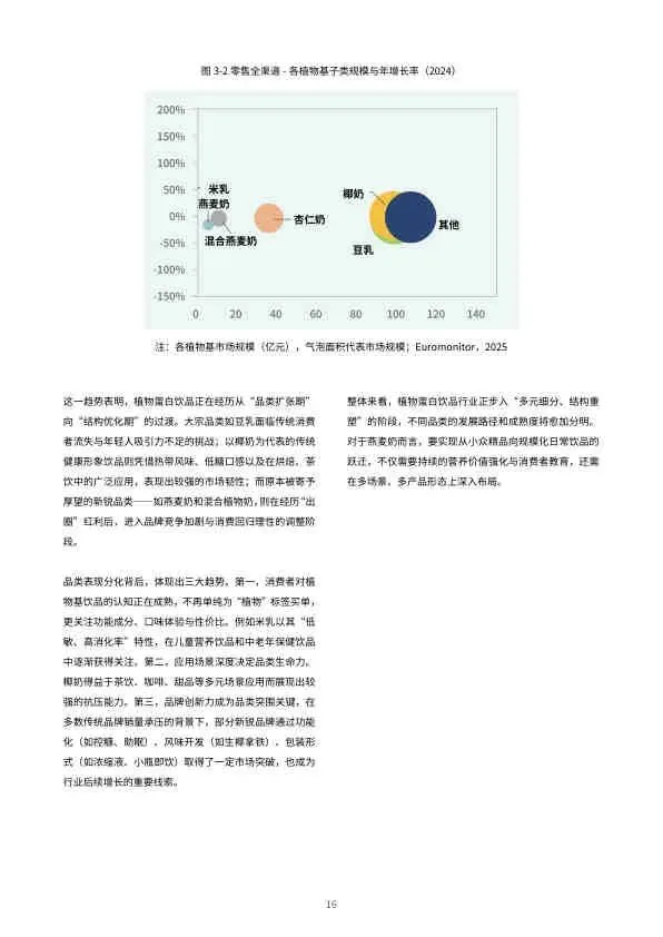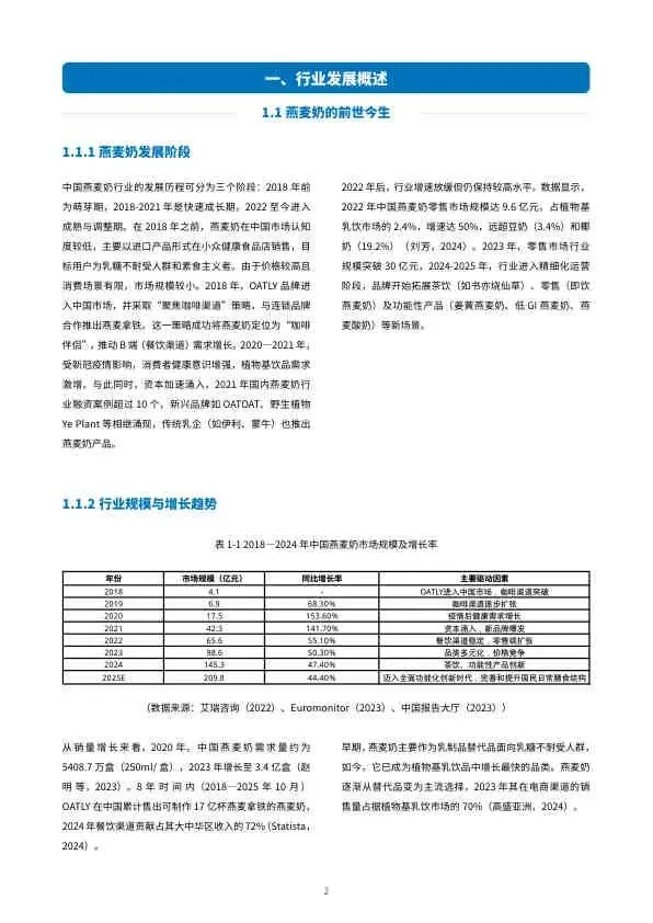 - 市场规模: 零售市场规模从2018年的4.1亿元飙升至2024年的145.3亿元,预计2025年将达209.8亿元。电商渠道占据植物基乳饮市场70%份额。