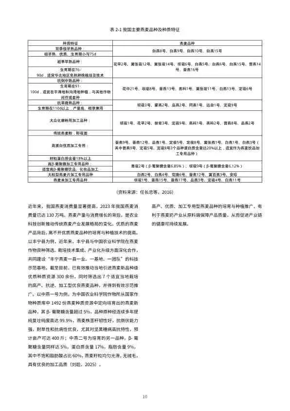 - 行业推动高β-葡聚糖、高蛋白专用燕麦品种的培育与种植。