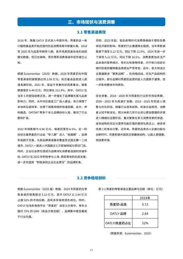 - 传统乳企入局: 伊利、蒙牛等推出燕麦奶产品,加剧市场竞争。