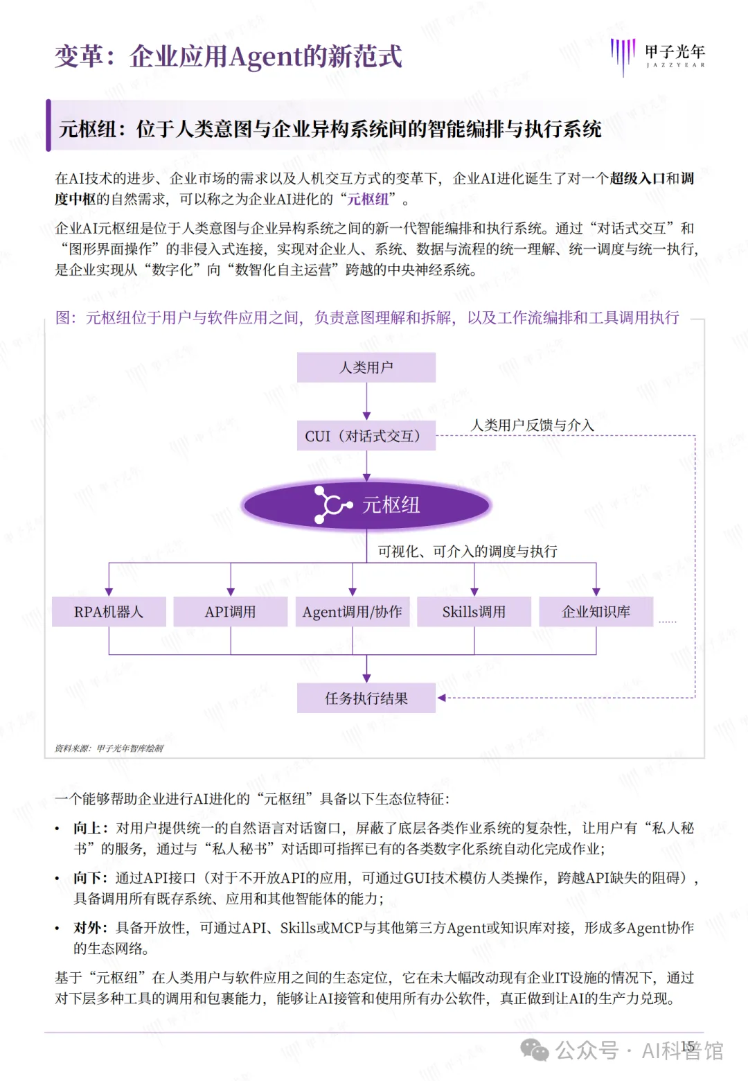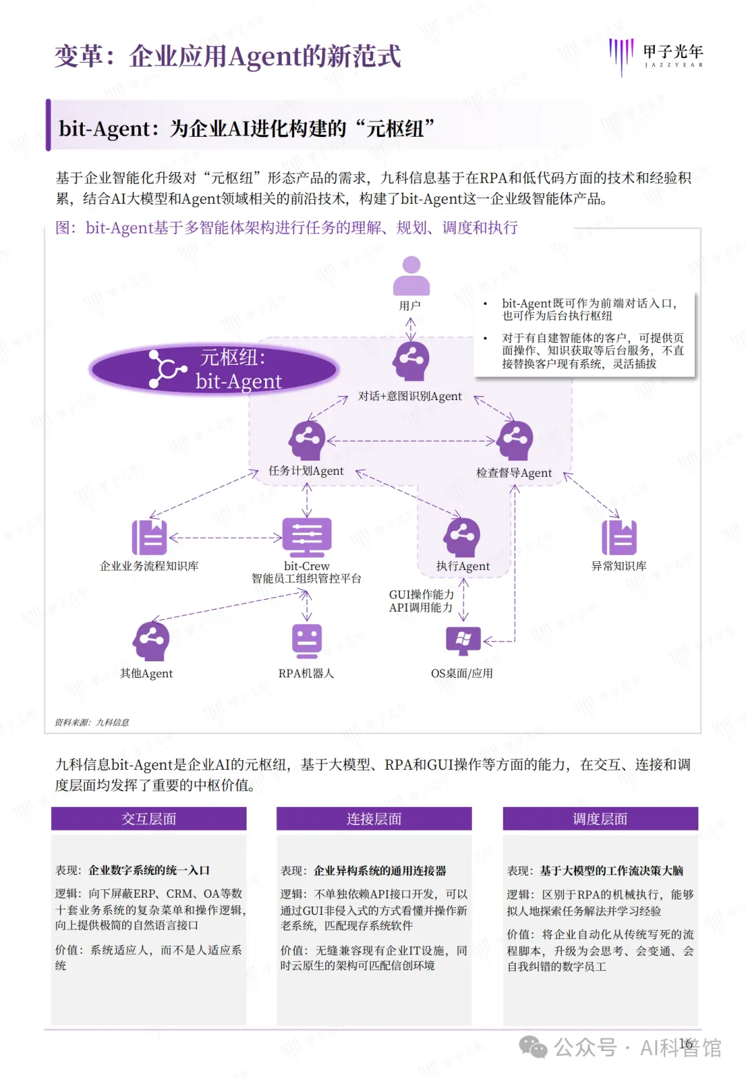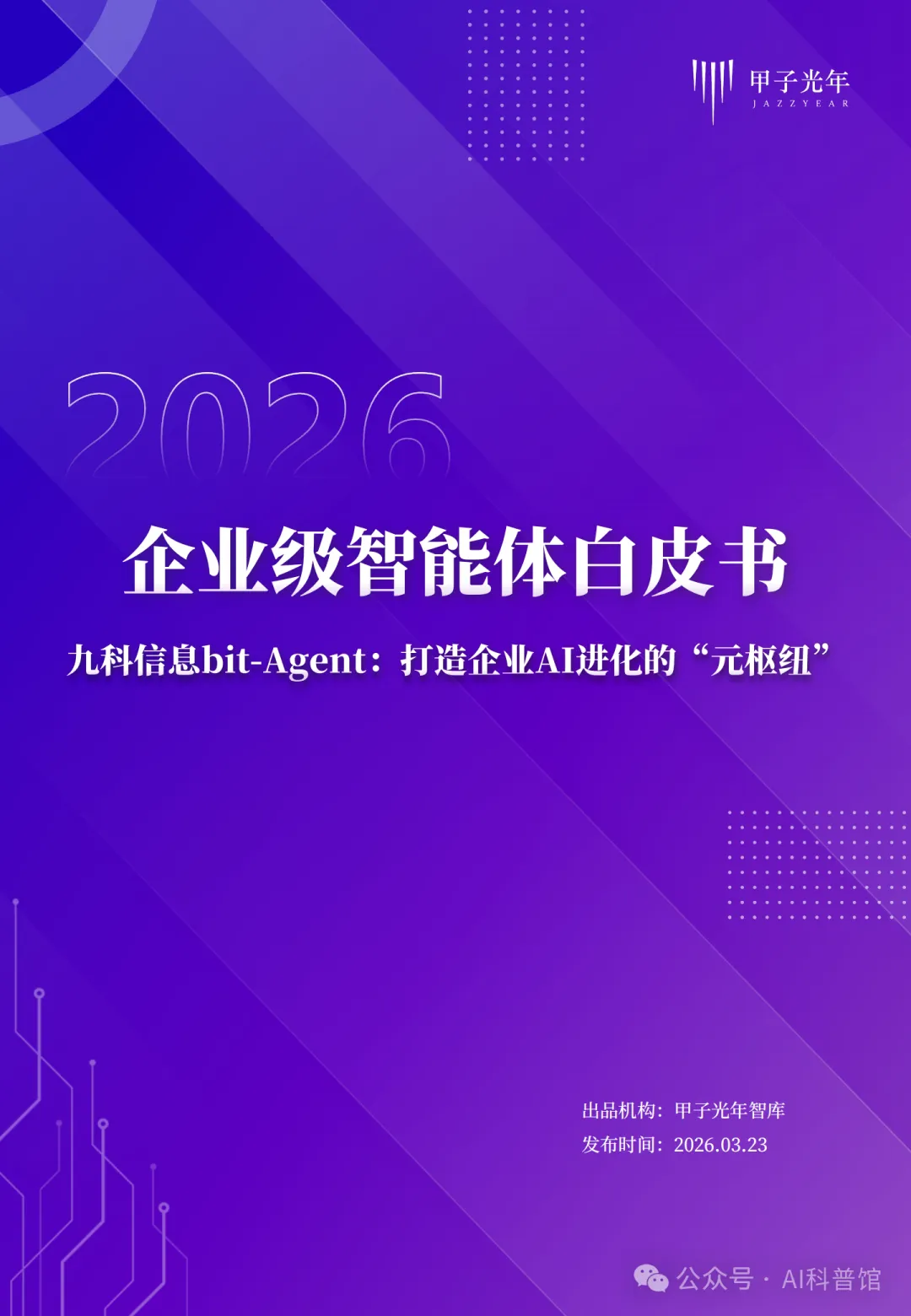 2025年,AI产业的核心叙事正从“Chatbot式对话”转向“Agent式执行”。在这一波浪潮中,企业级智能体(Agent)成为推动数字化转型从“自动化”迈向“智能化”的关键力量。甲子光年联合九科信息发布的《2026企业级智能体白皮书》,以“元枢纽”为核心概念,系统性地勾勒了企业AI进化的路径、挑战与解决方案。本文将围绕白皮书的核心观点,解读企业智能体落地的现实困境、创新机制与未来图景。