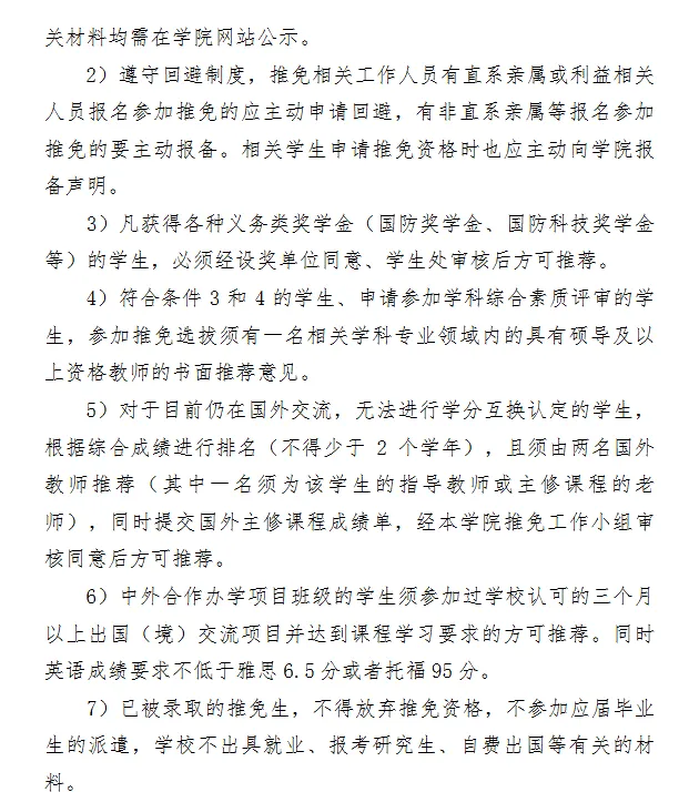 本院校保研政策、推免细则
