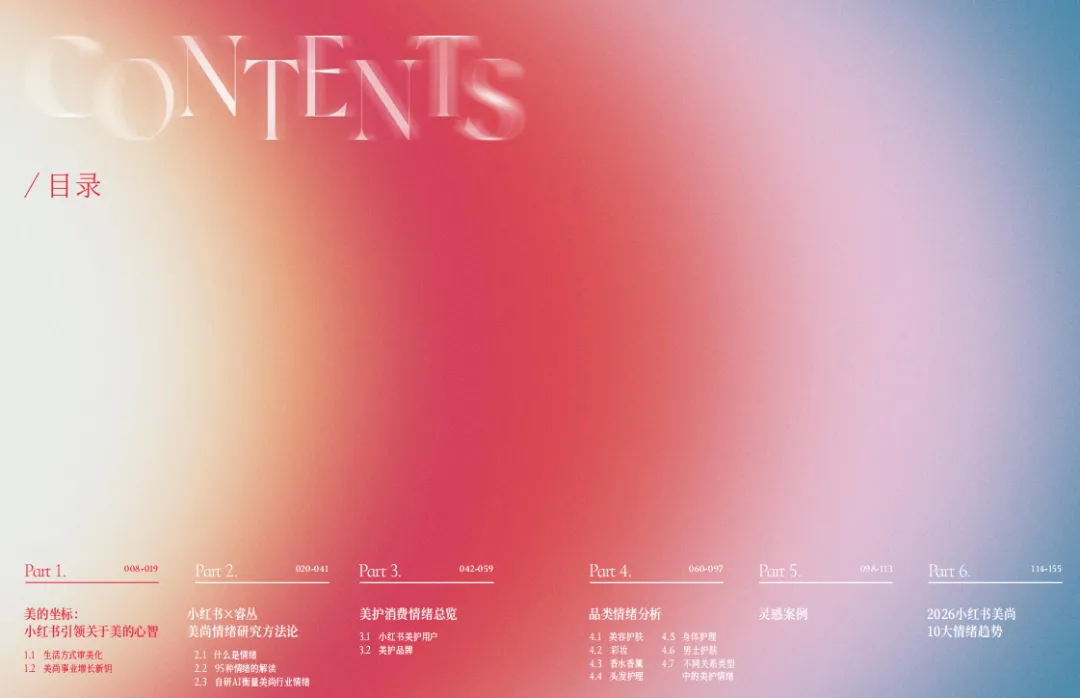 小红书《2026 美护情绪洞察白皮书》核心结论:美护行业已进入情绪主位时代,美不再是功效堆叠,而是情绪本身。欣赏感、接纳感为核心正向情绪,担心、无奈是主要负面情绪,品牌只有在关键情绪节点精准共鸣,才能跳出成分内卷,实现长效增长。